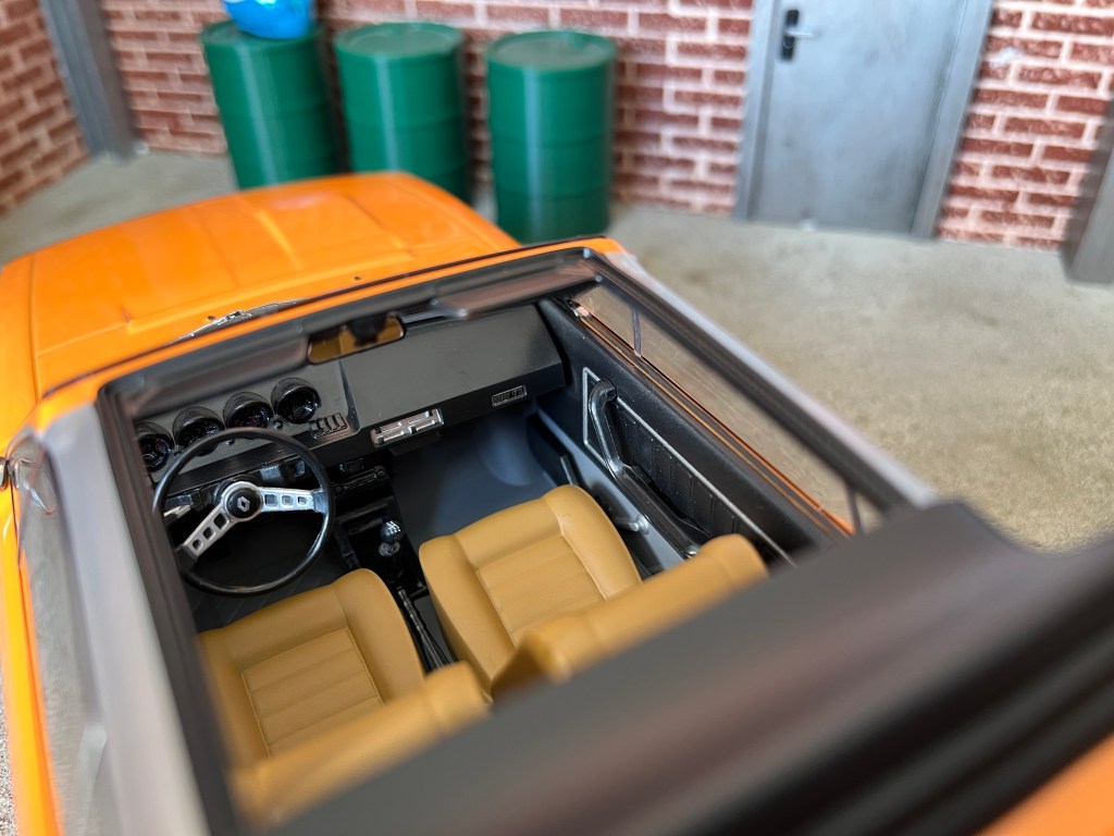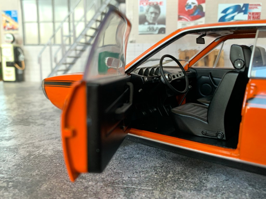 L’habitacle des Renault 17 peut-être observé en détail grâce au toit qui est en position ouverte.