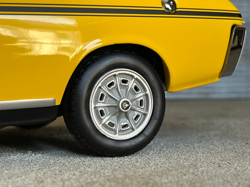Il est cependant dommage de ne pas avoir été jusqu’au bout de l’effort… Les jantes du type Gordini auraient dû comporter quelques touches de noir (elles sont uniformément grises) et elles ne devraient pas arborer le logo Dunlop en leur centre.