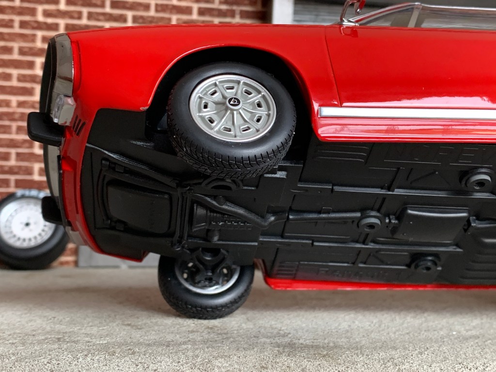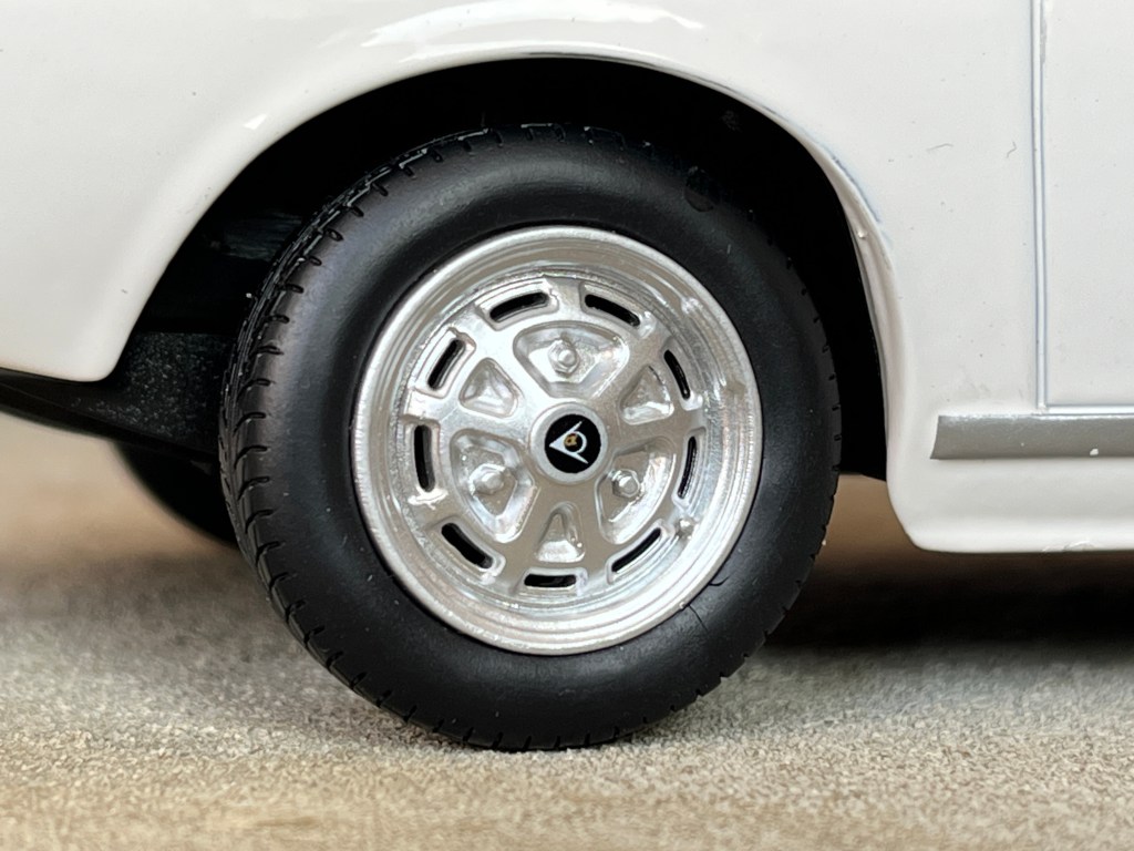 Les jolies jantes Dunlop sont quant à elles bien réalisées mais le fabricant a oublié de représenter les trois boulons qui permettaient de les fixer.