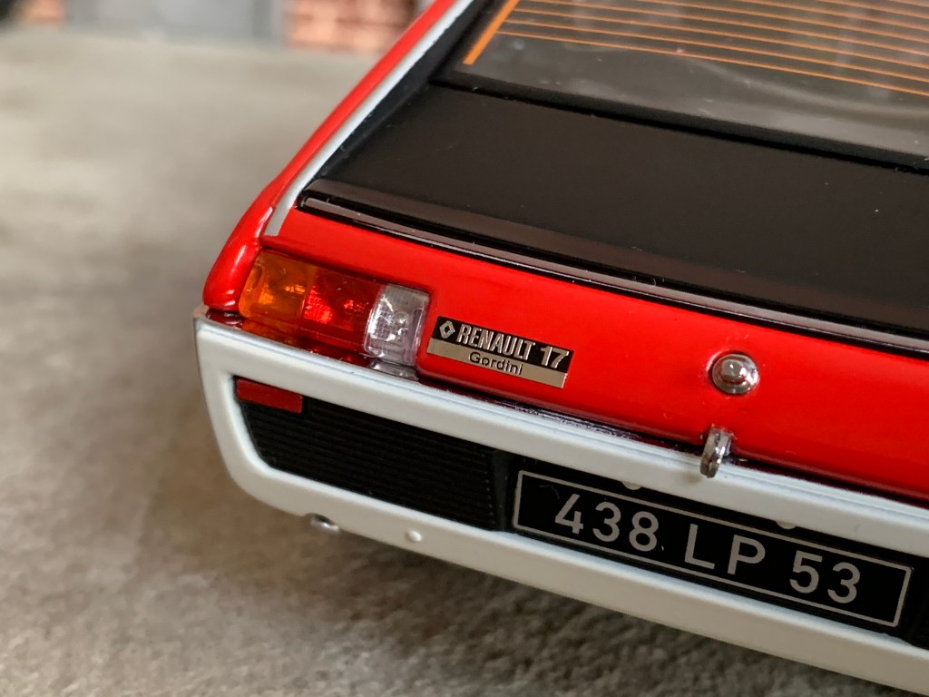 Toutes les pièces rapportées sont correctement assemblées sur la carrosserie. Il en est de même pour les nombreux marquages et les bandes décoratives des Renault 15 TL et 17 Gordini diffusées dans la gamme Exclu Web.