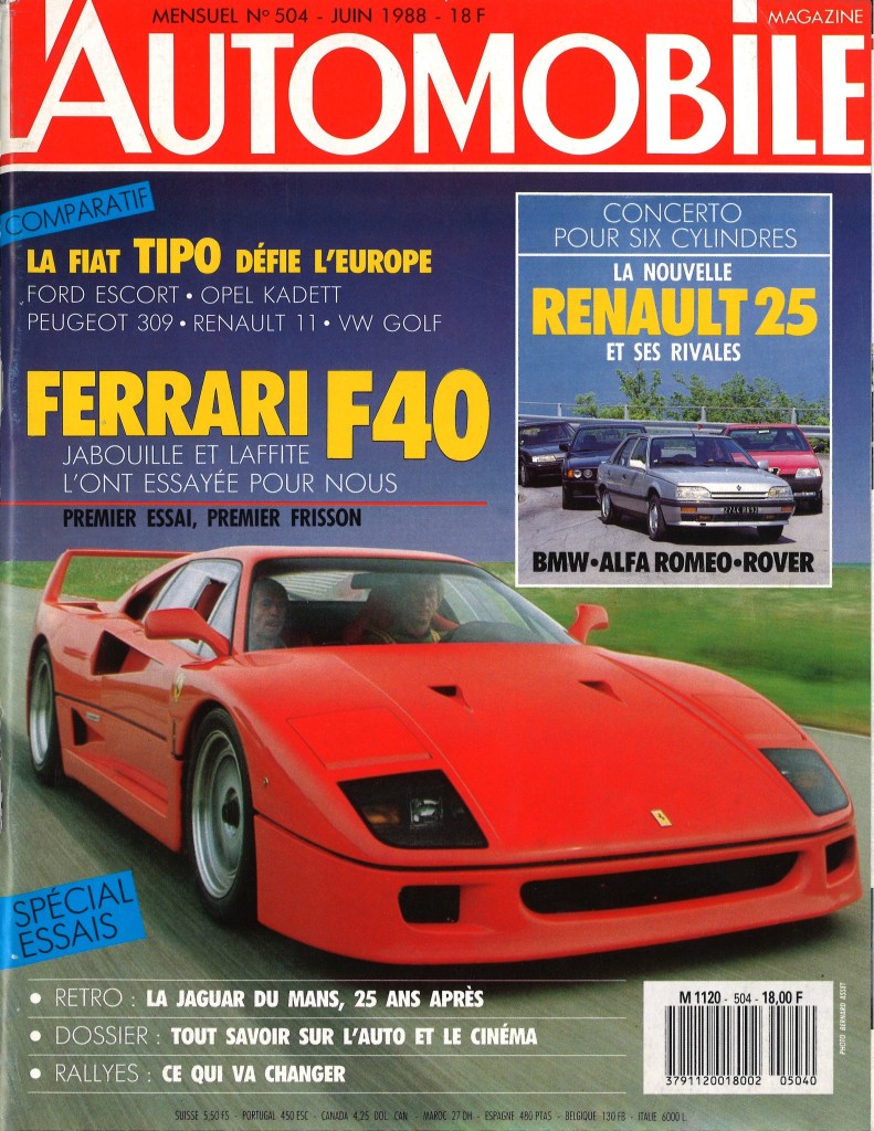 Dans le magazine AUTOhebdo publié en mai 1988, Pierre Dieudonné complète : « la F40 est la plus puissante et la plus rapide des Ferrari jamais mises sur la route. Donnée pour 324 km/h elle bat sur le papier tout ce qui a jamais existé. »