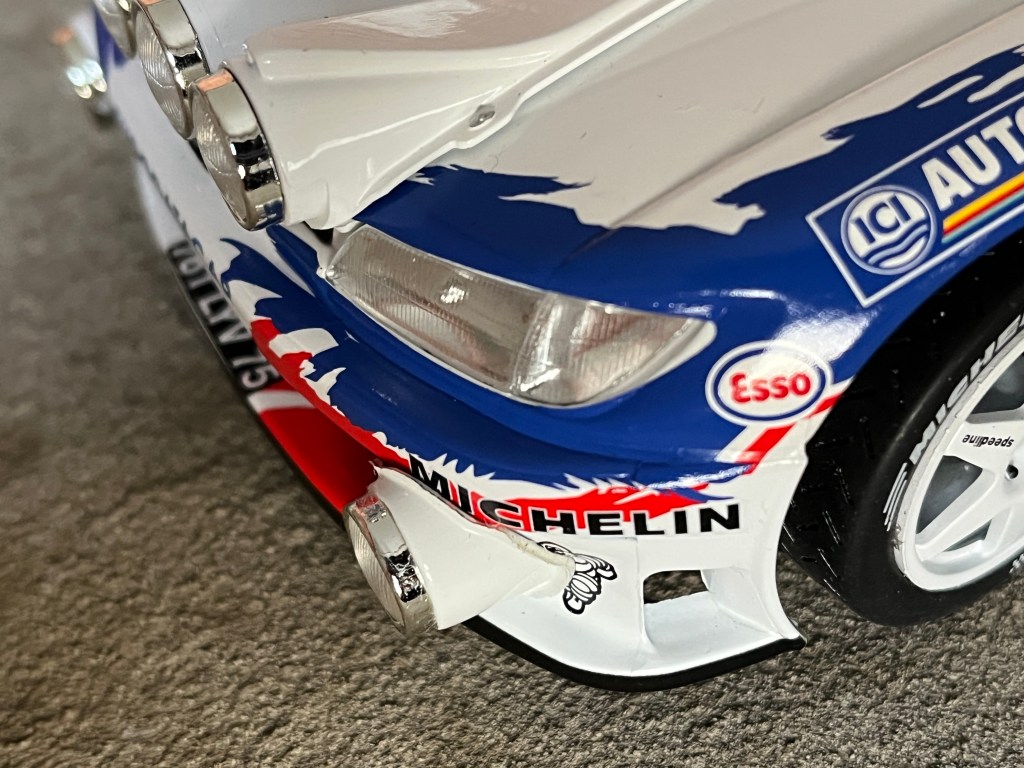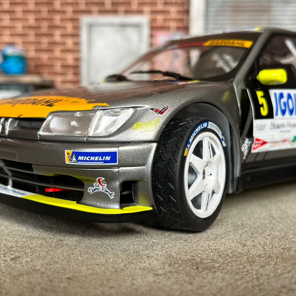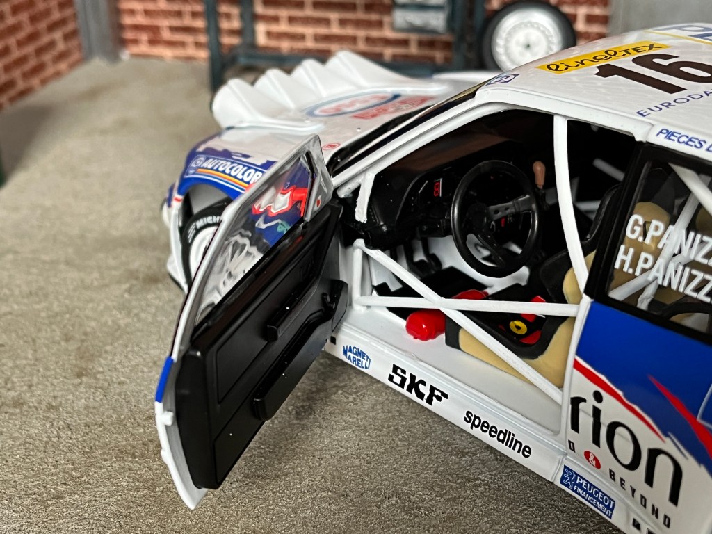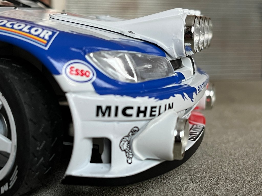 Les jantes et les pneumatiques sont également fidèles, tout comme le châssis qui bénéficie d’un soin particulier. Ce dernier est blanc, comme l’était le châssis de toutes les 306 Maxi.