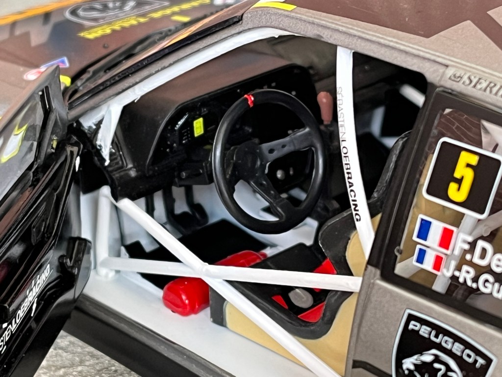 Pour contenir le prix très compétitif de sa miniature, Solido a néanmoins fait quelques choix qui ne seront pas au goût de tout le monde : les harnais de sécurité sont simplement peints sur les baquets – des pièces rapportées auraient permis de gagner en réalisme – et les rétroviseurs et l’antenne de toit sont fournis séparément dans un petit sachet. Il faudra les installer soi-même. L’antenne de toit est malheureusement beaucoup trop épaisse et manque de réalisme.