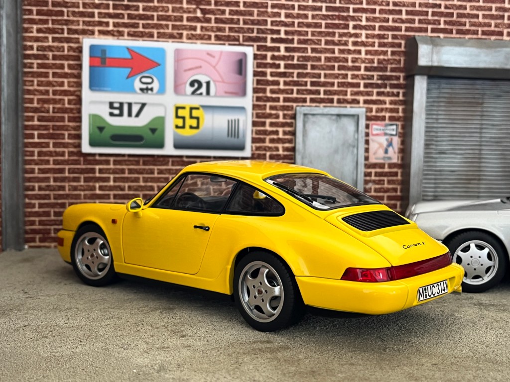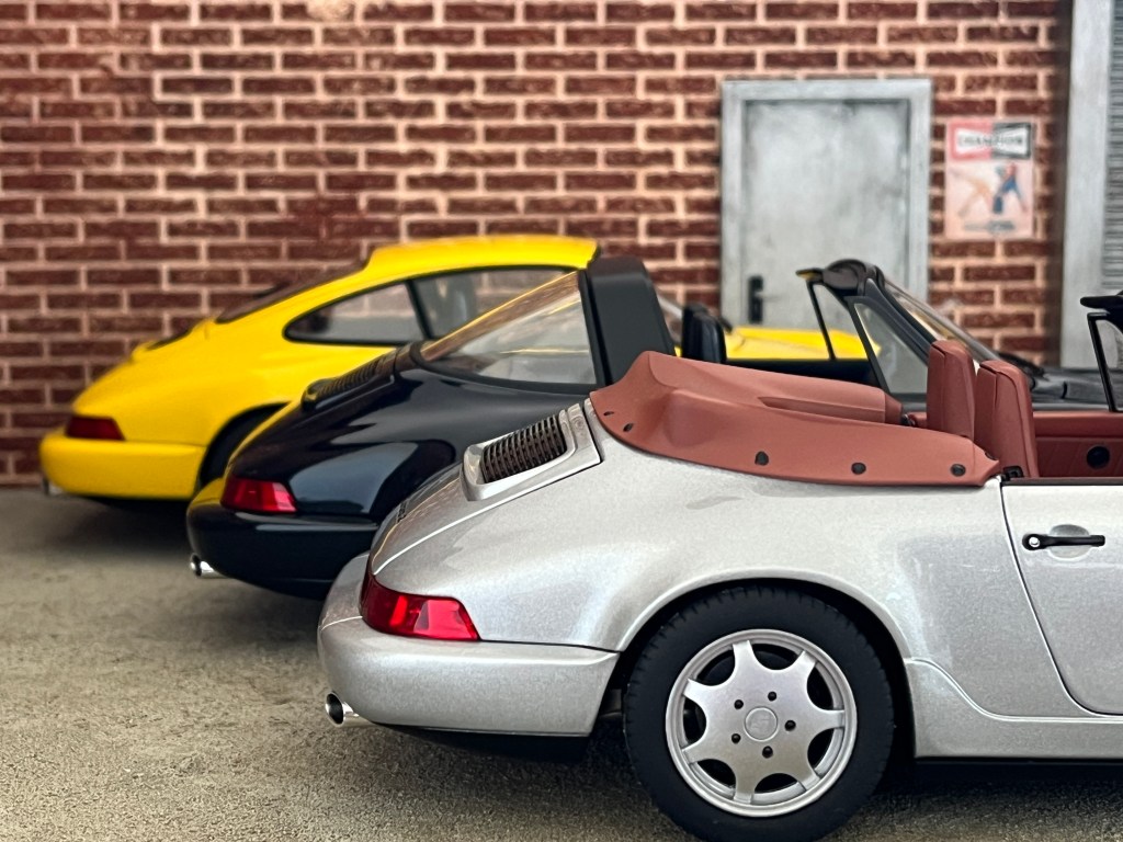 L’année 2023 est un véritable festival pour les fans de la Porsche 964. Norev a en effet décliné cette 911 au 1/18ème dans de multiples couleurs et carrosseries. Les voici présentées en détail.