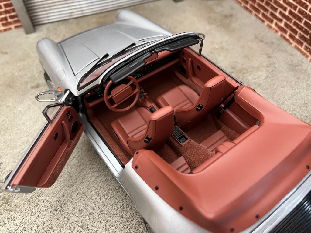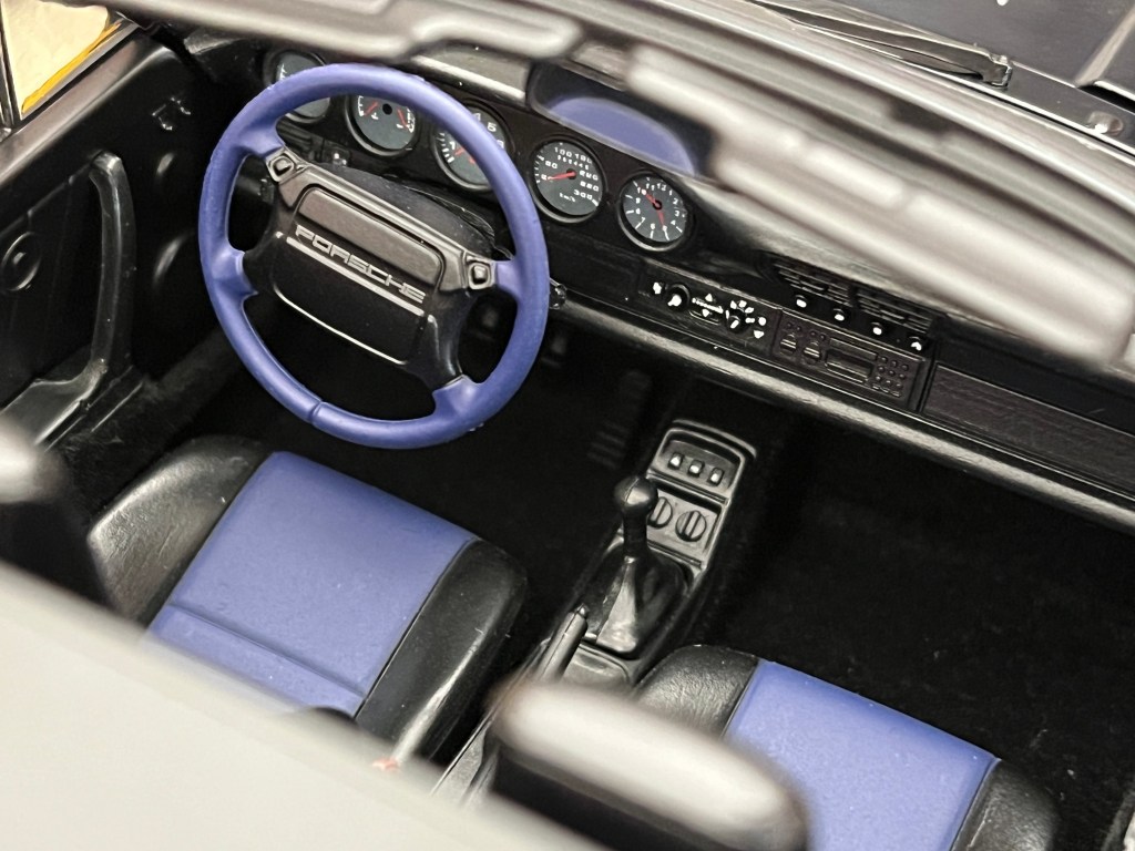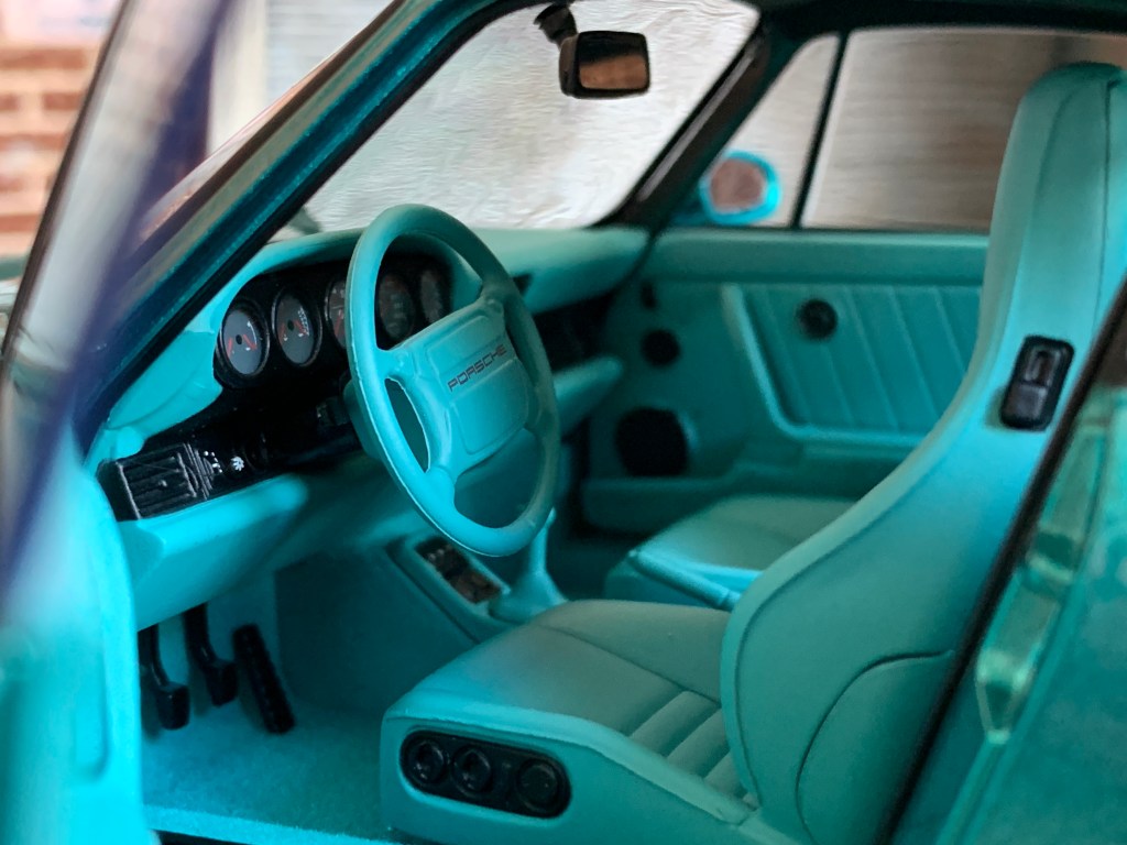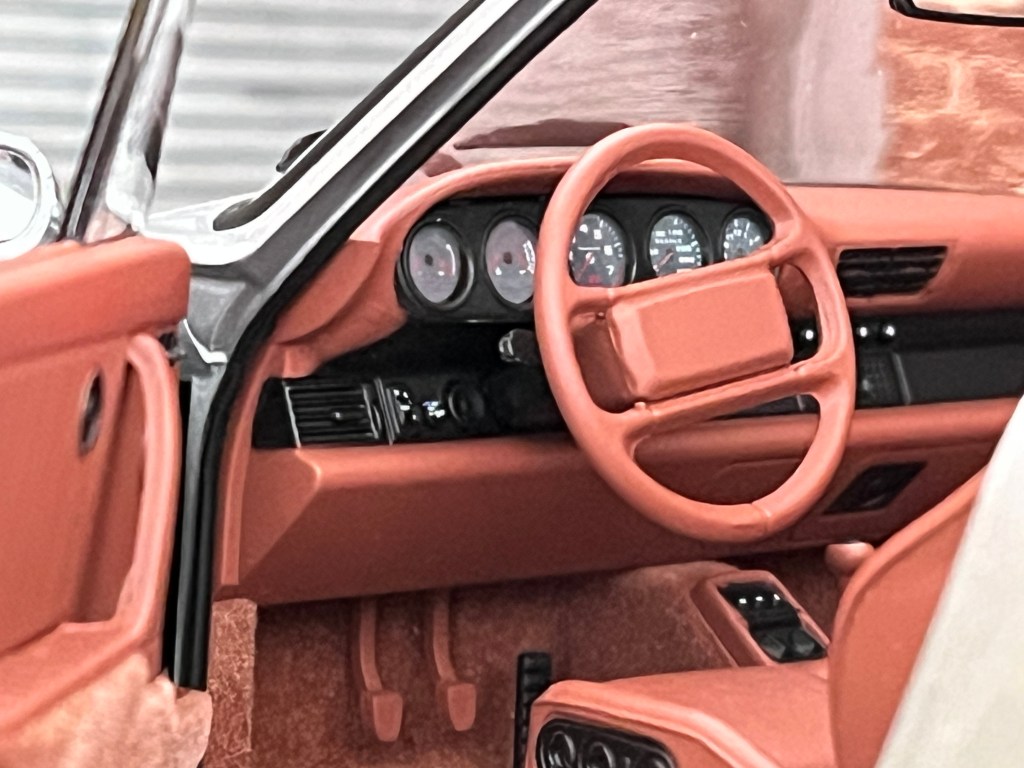 L’habitacle est identique à toutes ces 964. La seule différence concerne la couleur de l’habillage. Quel que soit ce coloris, la réalisation est d’un très bon niveau et conforme au modèle à l’échelle Un.