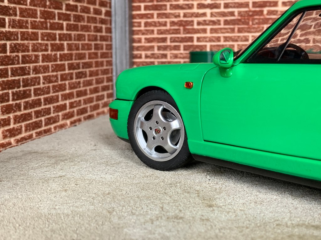 Comme vous pouvez le voir sur les photos qui illustrent cet article, j’ai monté sur la 964 de couleur rouge les jantes Cup afin d’être en conformité avec les rétroviseurs qui équipent cette miniature.