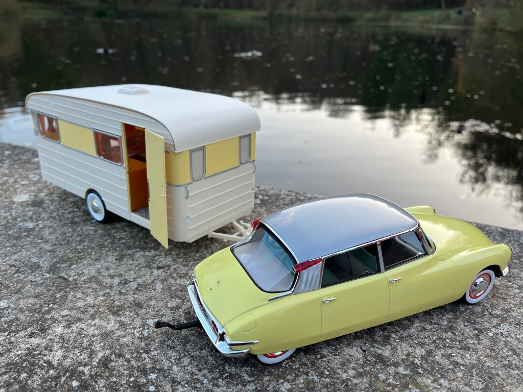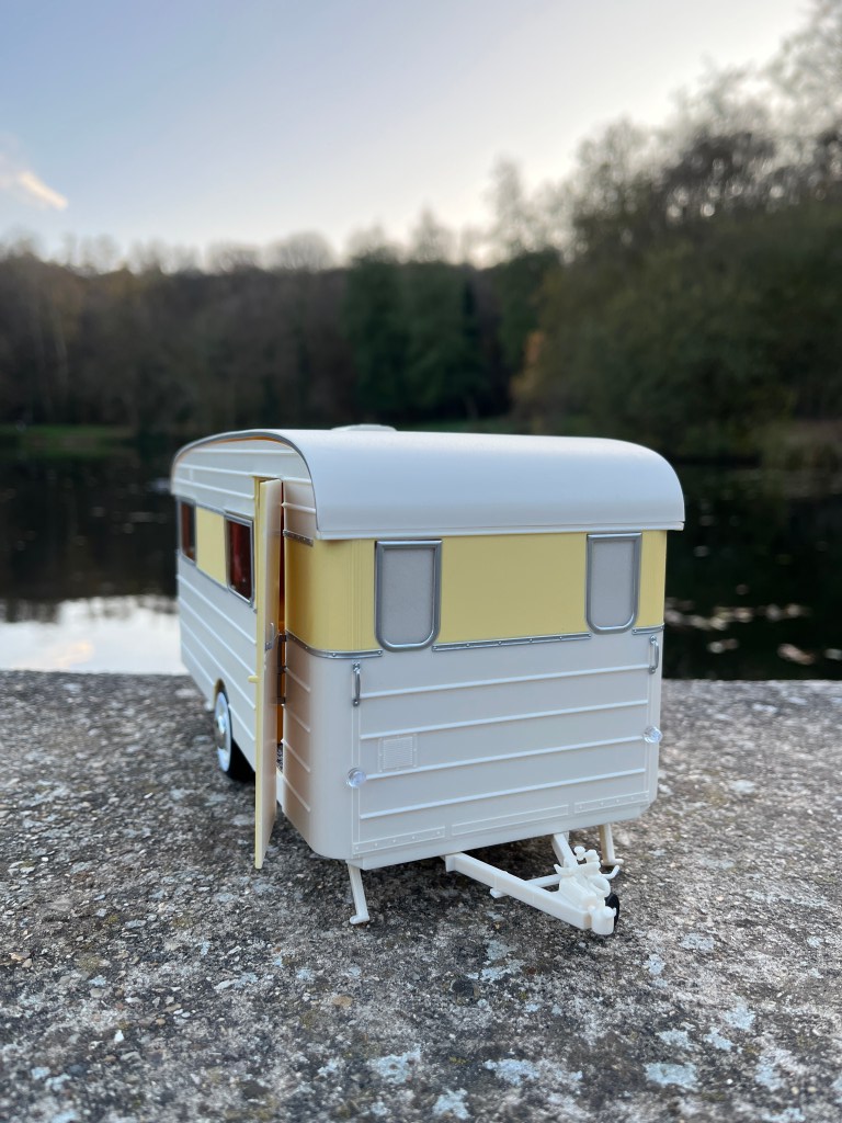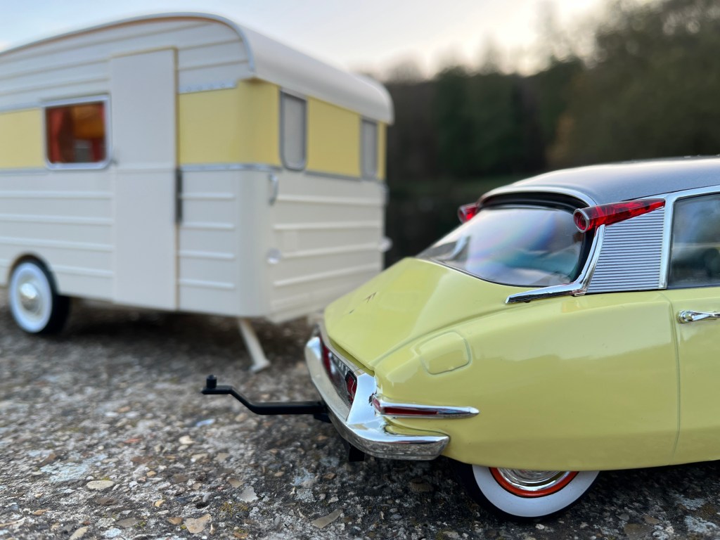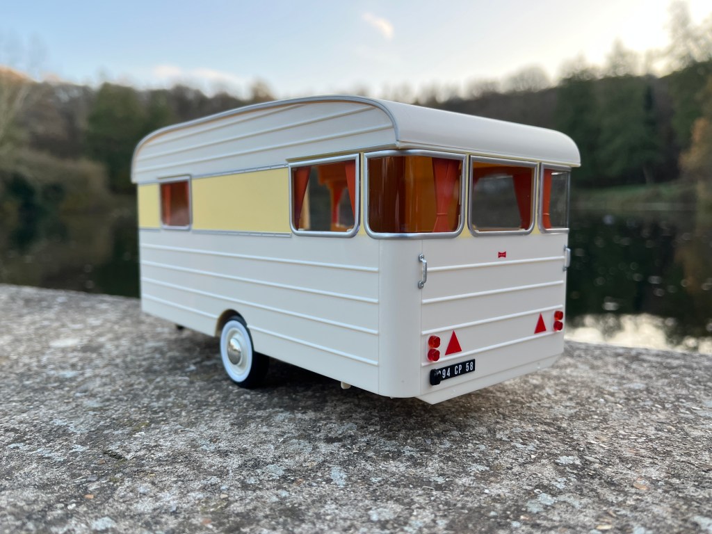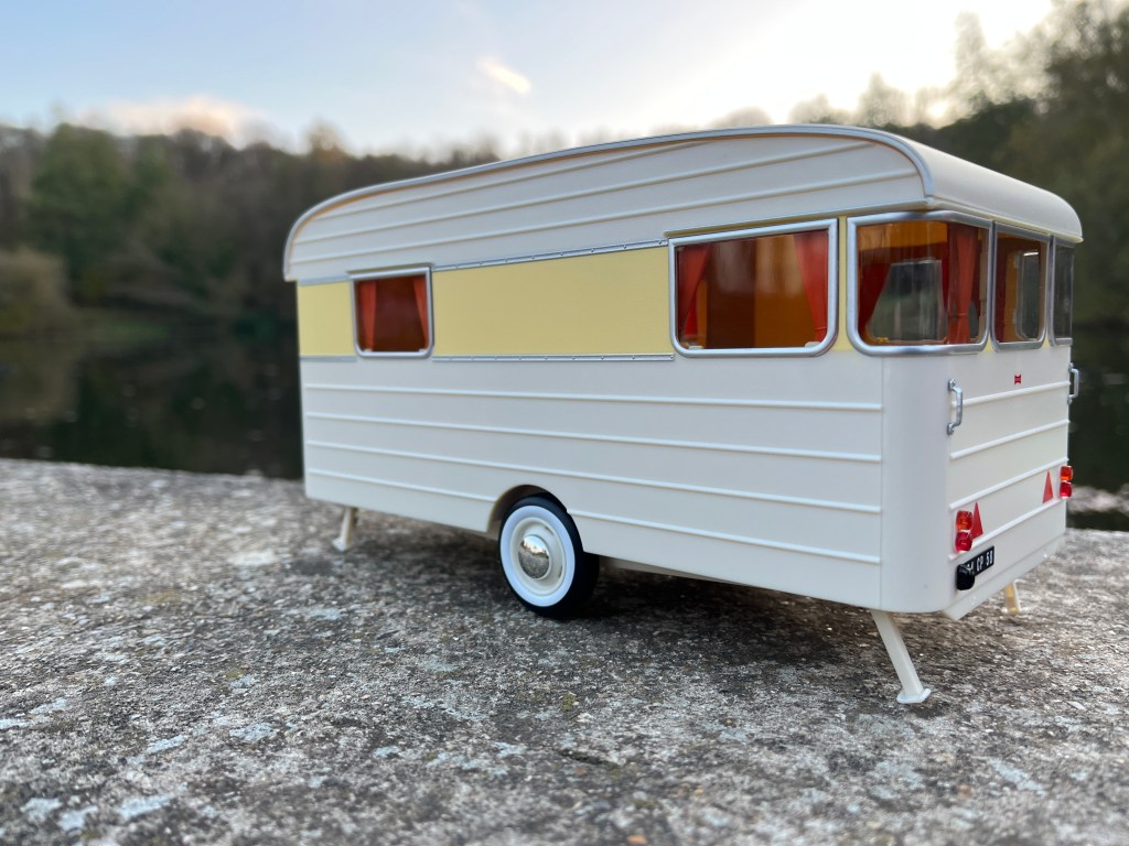 Les caravanes au 1/18ème ne sont pas légion… Avec cette Digue Panoramic 14, Norev ajoute une deuxième référence à son catalogue, la première étant la caravane Henon développée il y a de nombreuses années et diffusée successivement avec une Simca Chambord, une Peugeot 404 ou une Citroën DS.