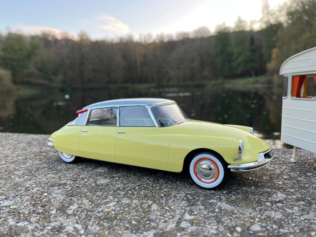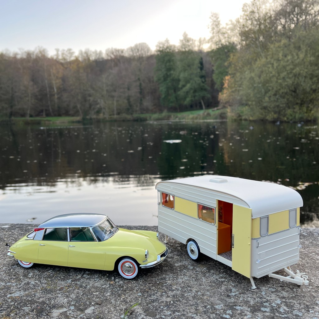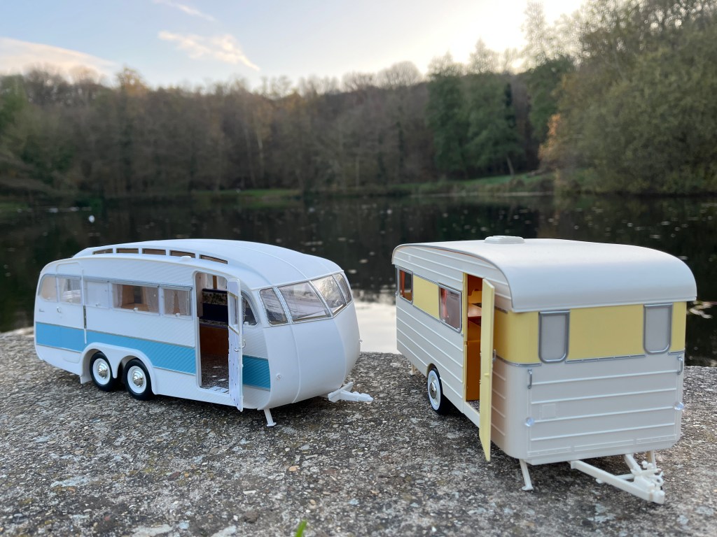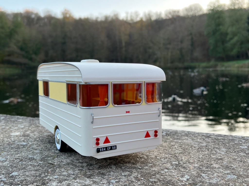 Les caravanes au 1/18ème ne sont pas légion… Avec cette Digue Panoramic 14, Norev ajoute une deuxième référence à son catalogue, la première étant la caravane Henon développée il y a de nombreuses années et diffusée successivement avec une Simca Chambord, une Peugeot 404 ou une Citroën DS.