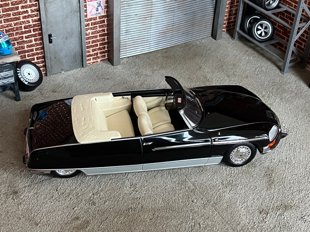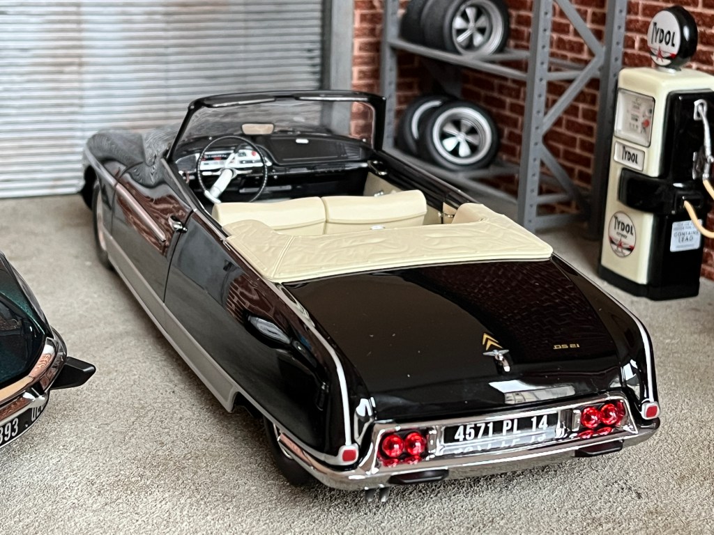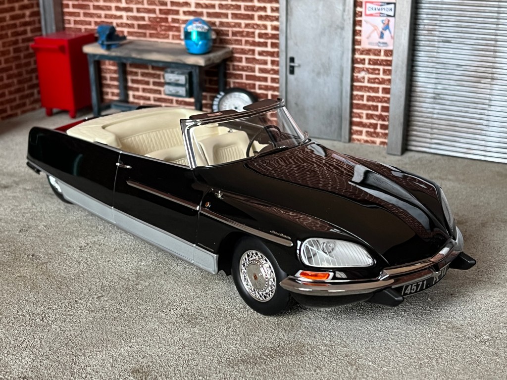 Norev décline au 1/18ème les emblématiques Citroën DS carrossées par Chapron dans les années 60 et 70. Voici la DS 21 Palm Beach de 1968.